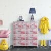 A great addition to any room: Bring on the toys, books, and blankets! Display this charming nightstand in the kid’s bedroom filled with linens and clothes or play area complete with coloring books, Legos, plushies, and dolls! The soft lightweight fabric makes it easy for kids to pull out their favorite toys for play dates or easily put them away within the colorful drawers. In the nursery, this chest brightens up your little one’s sleeping space for stylish baby storage. With kids and teens in mind, it complements pastel rainbow decor, unicorn themes, and trendy ombre colors for a fun look.