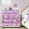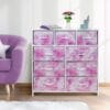 Update your child’s room with the Sorbus 9-Drawer Dresser: This colorful dresser chest features a tabletop surface and pull-out drawers to tuck away household clutter. Place all your child’s folded t-shirts, jeans, pajamas, or extra blankets and toys within the spacious fabric drawers. For display, the top surface can be used for lamps, books, clocks, and more. The playful tie-dye color combo makes this furniture storage charming for any nursery, playroom, or bedroom. It is lightweight for easy transport and when not in use, simply fold the fabric drawers flat for storage. Complete the look with any drawer configuration from the Sorbus Furniture Collection. Getting organized never looked better!