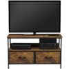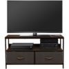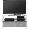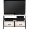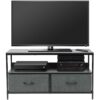 Organize and entertain with our TV Dresser Stand! Sleek and minimal, it features a faux wood top surface and a strong steel frame. Two drawers pull out to reveal all your gadgets or everyday household items. Place anywhere from your living room, bedroom, or college dorm to get organized in style. The lightweight frame makes this it easy to transport and when not in use, simply fold the fabric drawers flat for storage.