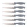 – Set includes: 8″ chef’s knife; 8″ carving knife; 8″ bread knife; 5″ utility knife; 3.5″ paring knife, six 4.5″ steak knives, scissors, sharpening steel and rubberwood block
