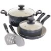 Spice by Tia Mowry Savory Saffron 7 Piece Ceramic Nonstick Aluminum Cookware Set with Nylon Utensils in Grey