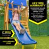 – 6 ft double walled blow-molded slide comes with lifetime warranty (competition uses multi piece, plastic sheet as slide)