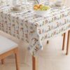 60 x 60 Square Tablecloth. Made Domestically, Polyester. Hemmed Edges. Seamless cloth. Machine Washable with Light Iron touch up as needed. Will soften after each wash. Engineered to resist stain absorption. Perfect for all occasions!