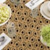 70 x 70 Square Tablecloth. Made Domestically, Polyester. Hemmed Edges. Seamless cloth. Machine Washable with Light Iron touch up as needed. Will soften after each wash. Engineered to resist stain absorption. Perfect for all occasions!