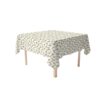 70 x 70 Square Tablecloth. Made Domestically, Polyester. Hemmed Edges. Seamless cloth. Machine Washable with Light Iron touch up as needed. Will soften after each wash. Engineered to resist stain absorption. Perfect for all occasions!