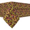 70 x 70 Square Tablecloth. Made Domestically, Polyester. Hemmed Edges. Seamless cloth. Machine Washable with Light Iron touch up as needed. Will soften after each wash. Engineered to resist stain absorption. Perfect for all occasions!
