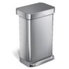 – Space-saving design allows you to easily fit the trash can against a wall or cabinet to save space in your kitchen