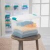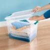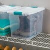 Need help getting organized These Sterilite 25-Quart Capacity Clear Storage Totes will help you with your moving or storage needs. This bundle comes with 18 storage totes to meet all your needs. These durable storage totes feature a 25-quart capacity, so storing items such as seasonal clothing or shoes is a breeze. The latching lid attaches to the base to ensure your belongings stay safe and secure during a move or while in storage. The lids also feature an indexed design, making it a snap to stack and store these totes when not in use. Molded handles allow for easy carrying, making your next move or spring cleaning project easy to tackle. The transparent material ensures that you can easily identify the contents of the storage unit with ease. Indexed surface area lids provide stability when you stack multiple units together. Quality is key when it comes to choosing storage materials. That’s why the Sterilite 25-Quart Clear Storage Totes are crafted from durable plastic to keep your possessions protected.