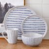 - Four Dinner Plates, four Salad Plates, four 25.3-oz. Bowls, four 18.5-oz. Mugs