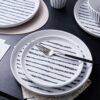 – Dinner Plate: 1″H x 10.3″W x 10.3″D Salad Plate: 2″H x 7.9″W x 7.9″D Bowl: 2.8″H x 5.9″W x 5.9″D Cup: 4″H x 3.5″W x 3.5″D