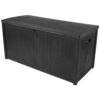 – DURABLE MATERIAL – Constructed from sturdy resin, this waterproof storage box is durable enough for season after season of use, with a sleek, fade-resistant faux wood slat design that is sure to complement your existing outdoor patio furniture.LOCKABLE STORAGE BOX – Keep your home and garden organized in style with this sturdy indoor or outdoor storage box. Add a padlock to safeguard items on your deck or patio, as well as in a sunroom, garage, or basement (lock not included).AMPLE SIZE – This patio storage box features a 113-gallon capacity, perfect for stashing gardening tools, furniture cushions, pool accessories, or even using for outdoor toy storage. This attractive outside storage bin will stow it all.DURABLE MATERIAL – Constructed from sturdy resin, this waterproof storage box is durable enough for season after season of use, with a sleek, fade-resistant faux wood slat design that is sure to complement your existing outdoor patio furniture.