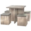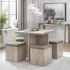 – Combine dining and storage with this striking dining set that hides storage in each of the ottomans that serve as dining seating.