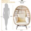 SUGIFT Wicker Egg Chair Oversized Indoor Outdoor Patio Lounger with Steel Frame, 440lb Capacity, Beige