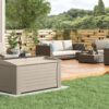 – 127-gallon deck box designed for storing cushions, yard supplies, and swimming pool stuff