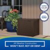 – Constructed of durable resin materials that will stand strong in any weather conditions and will keep content safe