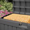 – Spacious 50-gallon patio and deck storage box with molded lock fit for storing outdoor essentials from gardening tools to cushions