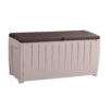 Suncast Indoor/Outdoor 73 Gal Capacity Resin Deck Box w/Seat, Mocha, 46 in D x 22.5 in H x 21.6 in W