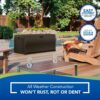 - Deck box for storing gardening tools, athletic equipment, outdoor dining decor and more