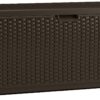 – Suncast Indoor and Outdoor 73 Gallon Resin Deck Box with Seat, Mocha Brown, 46 in D x 22.5 in H x 21.6 in W