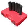 – 5-piece extra deep socket set with 1/2-inch drives and sizes for automotive repairs and other projects