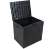 – DESIGNED FOR LONG-LASTING STRENGTH: The square deck box features a UV-protected, weather-resistant, polypropylene and resin construction with a woodgrain look for durability and beauty.