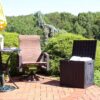 – SIZED TO STORE PATIO OR GARAGE ITEMS: The small outdoor storage box measures 22″ W x 17″ D x 21″ H and weighs 8.2 lbs. The interior of the deck box measures 21″ W x 14″ D x 20.25″ H. The top of the box has a weight capacity of 110 lbs.