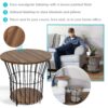 Adorn any living space with modern flair with this indoor wire, pedestal style end table featuring an unfixed tabletop. Place in any living room to display pictures or add indoor lamplight, next to the bed for extra table space, or in any entryway to neatly toss everyday items. Versatile for any space, open the tabletop as a lid to store blankets, pillows, and other items with ease. Made from durable thermoplastic steel wiring with a clear coating of LDPE, this bedroom side table is built to withstand wear while adding a unique feature to the home. The MDF faux woodgrain tabletop has the look of real wood painted without the added maintenance. Designed to be used in indoor spaces only, this round metal side table is lightweight to easily place in any setting. All assembly hardware needed is included in the box (please note, a Phillips screwdriver is required to put this table together but is not included).