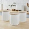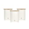 Add some Scandinavian-inspired style to your kitchen with Swan’s Nordic set of 3 storage canisters. Both secure and sophisticated, each canister is made from durable carbon steel, topped with an airtight wood lid to keep your coffee, sugar, tea and other perishables fresh for longer. The containers have a spacious capacity of 1.84 litres, letting you store a large quantity of loose ingredients inside each one. The matching set features a soft touch finish, coated in the perfect color to match the rest of the collection, with a wooden-textured lid to create a warm, calming appearance on your countertop.