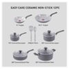 T-fal Easy Care Ceramic Non-Stick, 12 Piece Pots and Pans Cookware Set, Grey