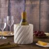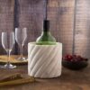 Add elegant sophistication to seasonal gatherings with GAURI KOHLI wine bottle chiller that celebrates the dramatic beauty of the stonemason’s art. Providing memorable presentation for your reds, whites & champagnes, this graceful wine bottle holder is distinguished by rich hues and intricate markings of real marble. Watertight construction doubles as a vase when the bottle’s gone.