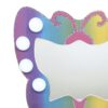 – Butterfly-shaped, shatterproof mirror with a colorful frame, surrounded by battery-powered LED lights