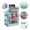 Featuring a four-level design with a functioning elevator, a blue exterior and a rooftop, this Teamson Kids Dreamland Barcelona Doll House makes a fun and colorful addition to any playroom.
