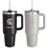 Sip beverages with a little bit of Michigan State Spartans pride showing using these The Memory Company Home/Away Colossal tumblers. Each one features shiny team graphics that display your unwavering spirit. The stainless steel material keeps liquids at the perfect temperature, while the convenient handle makes it easy to enjoy your favorite drink on Michigan State Spartans game days.