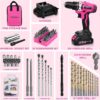 ThinkLearn Pink Cordless Drill Set, 20V Lithium-ion Power Drill Set for Women with 67Pcs Drill Driver Bits, 3/8 Keyless Chuck, 25+1 Position Electric Drill, 2.0Ah Battery, Fast Charger and Storage Bag