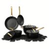 Thyme and Table Acadia 12-Piece Cookware Set Non-Stick – Black and Gold