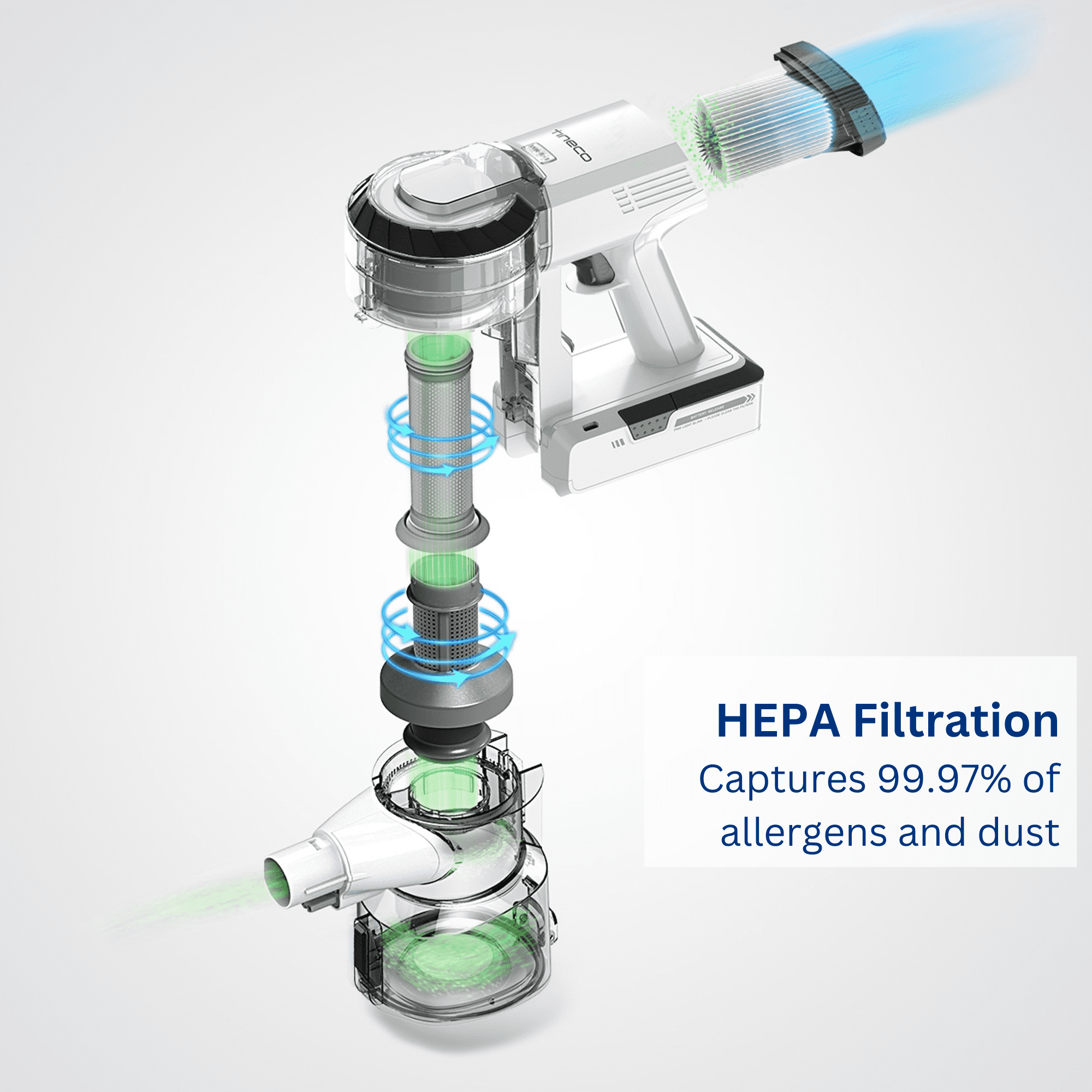 - 4-STAGE FILTRATION FOR A HEALTHIER HOME: The advanced, fully-sealed 4-stage filtration system captures fine particles, dust, and pollen as small as 0.3 microns, ensuring cleaner air is expelled back into your home. Achieve a healthier, allergen-free clean every time