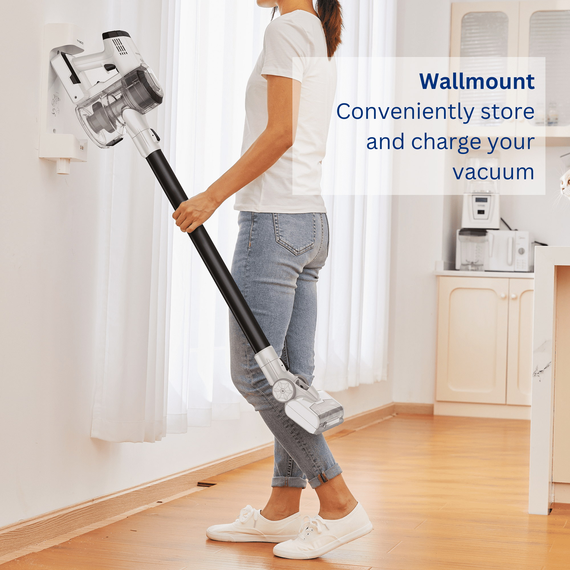 The Tineco Powerhero 11s cordless stick vacuum delivers strong suction and up to 40 minutes of runtime. Powered by a 450W motor with 120W suction, it quickly cleans pet hair, hard floors, and carpets. The lightweight design easily converts to a hand vacuum for stairs, furniture, and car interiors. A sealed HEPA filtration system captures 99.7% of allergens, releasing cleaner air while you vacuum. Included accessories: LED multi-task power brush, mini power brush, 2-in-1 dusting brush, crevice tool, wall mount dock, and adapter.