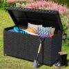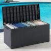 – Deck box with a storage capacity of 90 gallons, ideal for any patio or deck