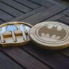 The Batman Bat-Signal Circo Cheese Cutting Board & Tools Set makes attractive use of limited space with a split-level wood cutting/charcuterie board and interior cheese set.