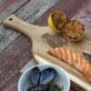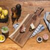 – This large cheese board platter has a live bark edge, giving each serving board a unique appeal of its own. Use the hemp hanging loop to display this plank-style wooden cutting board when not in use