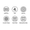 - Compatible with induction, gas, electric and ceramic glass cooktops