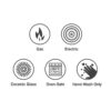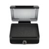 – Heat- and shattered-resistant tempered glass lids with wide-band stainless-steel rim