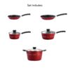 – 8-in. sauté pan, 9.5-in. sauté pan, 1.25-qt. covered sauce pan, 2.5-qt. covered sauce pan, 4.5-qt. covered dutch oven, three lids