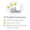 Tramontina Stainless Steel 12-Quart Covered Stock Pot:â ¢Durable stainless steelâ ¢Tri-Ply Base constructionâ ¢Ergonomically designed and soft-grip handles are riveted onto the stock pot for added strength and durabilityâ ¢Tempered glass lid allows you to monitor cooking progressâ ¢Compatible with induction, gas, electric and ceramic glass cooktopsâ ¢Dishwasher-safeâ ¢Lifetime warranty