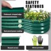 – Safety Features Anti-rust Coating, do not contaminate soil, safe for plants and humans; Oval shape, the raised planter box has rounded corner; Thickened crimped edge design, no sharp edges, smooth to the touch; Gloves included; will not hurt your hand when installing or planting