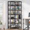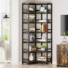 Tribesigns Brown/Black Metal 7 -Shelf Corner Bookcase ( 23.62-Inches W x 78.74-Inches H x 9.44-Inches D ) Painted