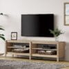 The oak wood grain and simple lines on this tv stand make it look classic and elegant. It can be not only used as televison stands, also perfect for sofa table, entertainment center, media stand, storage console table, tv console etc. This TV stand is perfect for TVs up to 75 inch TV.4 open shelves with big capacity allow you to storage the books, magazines, CDs and any other media or gaming devices. The media console table made of high quality MDF which is durable and sturdy enough to be used for a long time. Plus, four wooden legs further enhance stability, preventing the TV stand from wobbling. Max load capacity: 260 lbs. The oak entertainmen center for 75 inch tv with smooth surface is waterproof and easy to keep clean with a damp cloth. The tv table is 3.9 in high height off the ground which adequate for robot vacuum cleaner can passing freely. No more headaches from dust under the cabinet.