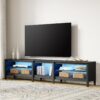 TV Stand for 85 inches Flat Screen, LED Wood Media Console Storage Cabinet Entertainment Center with 6 Open Shelves, 95 inches, Black