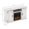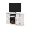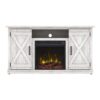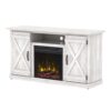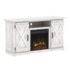 With the Twin Star Home Modern Farmhouse TV Stand for TVs up to 55″ with Electric Fireplace, you can enjoy stylish, modern farmhouse design while accommodating your flat screen TV of up to 55 inches and 40 pounds during your family movie nights. An open media shelf holds your cable box, gaming console, or other AV components while side cabinets with adjustable shelves provide storage your movie collection and electronic accessories. The cabinets and TV stand top feature a plank design with decorative saw cut X mullions on the doors for added rustic flair. For even more ambiance, use the electric fireplace to create a cozy atmosphere while warming up to 400 square feet of your home. The flame effects can be used with or without heat for the look of a gentle rolling fire all year long, even during warmer months. Choose between included contemporary fire crystals or a realistic log set with ember bed to showcase the beautiful flames.