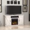 Twin Star Home Barn Door TV Stand for TVs up to 55 with ClassicFlame Electric Fireplace, Sargent Oak